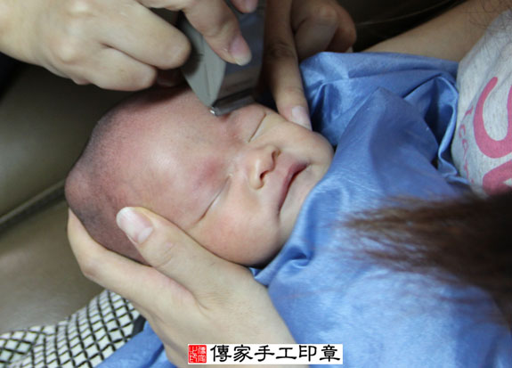 洪寶寶(新北市永和區專人嬰兒滿月到府剃頭理髮:包含專人幫寶寶剃頭,講儀式吉祥祝福、拍照活動紀錄、剃頭證書、燒錄光碟、po祝福專區)--製作胎毛筆、臍帶章、嬰兒三寶。「寶寶滿月剃頭理髮、到府嬰兒滿月理髮」祝福和活動紀錄 2014.09.21