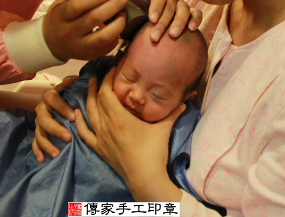 羅寶寶要開始剃頭囉,剃頭象徵今天從頭開始、圓圓滿滿喔。