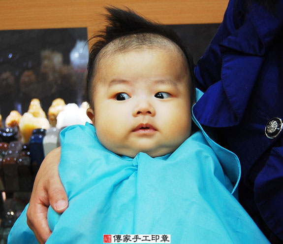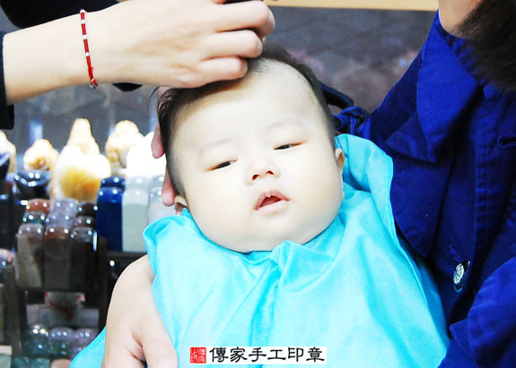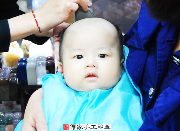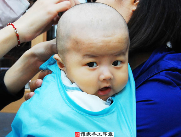 盧寶寶要開始剃頭囉, 剃頭象徵今天從頭開始、圓圓滿滿喔。