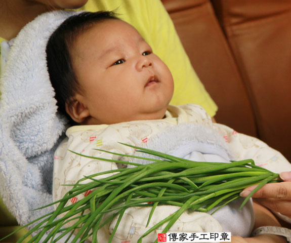 方寶寶要開始剃頭囉, 剃頭象徵今天從頭開始、圓圓滿滿喔。